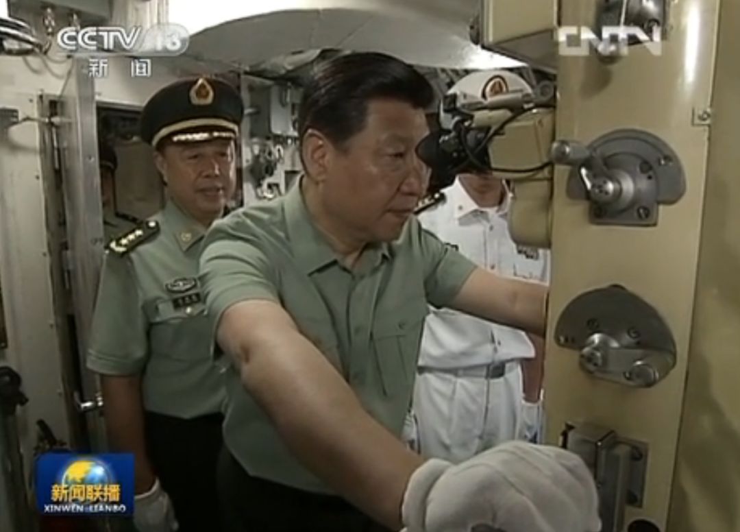 习主席先后视察了我国自行设计建造的最大吨位两栖作战舰艇“井冈山”舰和某新型潜艇。他下舱室、上甲板、进入舰载直升机机舱,了解武器装备性能,询问官兵的训练生活情况,