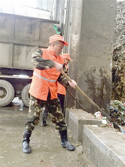 图为姚建平在工作中。(市环卫处供图)
