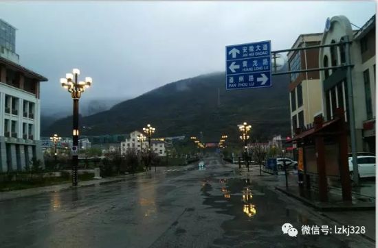 进入松潘新城,首先映入眼帘的就是“安徽大道”(下图)。安徽大道是松潘县城的主干道,直通松州古城门。在松潘新城,所有东西走向的道路都是用四川地名命名的,所有南北走向的道路都是安徽地名命名的。除了安徽大道,还有黄山路、淮河路。在这些路上,“幸福不忘共产党,援建永记安徽情”的标语比比皆是。
