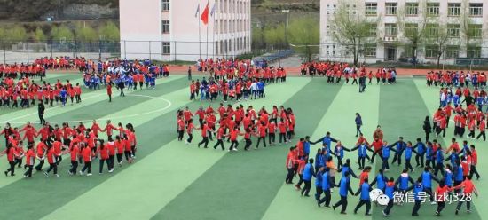 1600多名师生跳藏羌回汉舞蹈。(摄影/宾语)