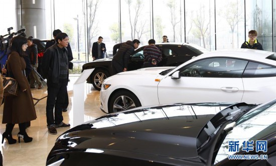 市民在上海自贸区平行进口汽车展示交易中心参观(2015年2月15日摄)。 新华社记者 方喆 摄