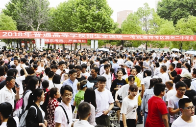 6月7日上午11时30分,文科考生井然有序地从滁州二中考场走出。当日,2018年高考大幕拉开,我市近2.7万名考生参加高考,考生人数比去年略有减少。全市共设8个考区、18个考点,888个考场。其中滁城3个考点分别设在滁州中学、滁州二中和滁州六中。今年高考依然采用全国统一试卷,高考时间是6月7日、8日。记者李晓村摄