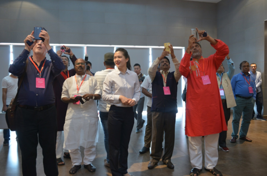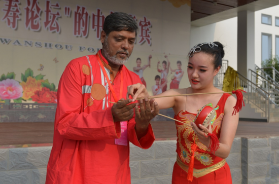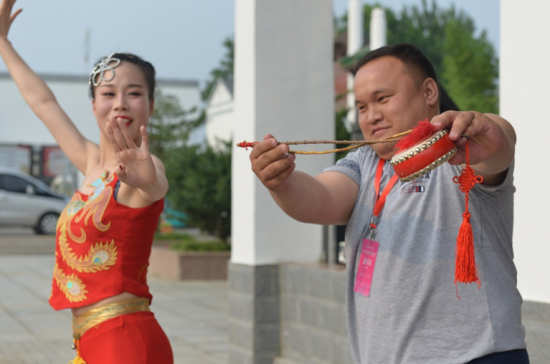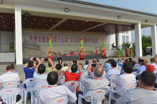 观看完当地特色的凤阳花鼓表演后,外国政党代表也跟着演员们学了起来。
