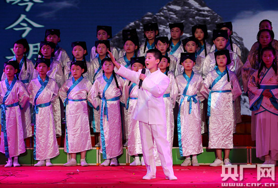 央广网合肥6月12日消息 6月12日,安徽省滁州市“中国梦 端午情”大型少儿经典诗词诵读活动在全椒大剧院举行。来自12所小学和少年宫的近千名学生诵读了《论语》、《三字经》等历代经典篇章。(沈果)