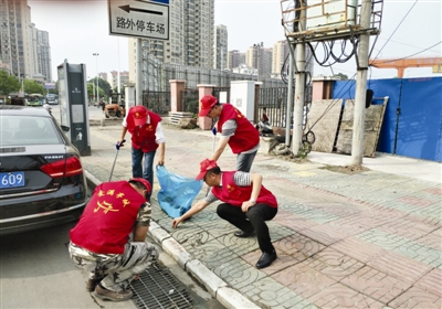 在“双捡”同时,志愿者们还进行文明交通引导、非机动车规范停放劝导,向沿街商铺开展创建全国文明城市知识宣传,对经营业主出店占道经营予以劝导。
