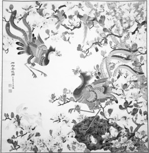 “凤阳凤画的诞生,没有具体的文字资料记载,但是在当地民间一直流传着关于凤画的传说。 ”凤阳县文广新局党组成员、县文化馆馆长张强介绍,明初,明太祖朱元璋集天下百工兴建的中都城罢建后,部分宫廷画师落入凤阳以画谋生,将龙凤图像改为画纸屏幅出售,尔后,经发展演变成为凤画专业画。