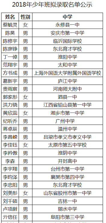 中国科大公示2018年少年班拟录取名单49名学生上榜 2018-07-30 15:02 ahwang.cn 扫描到手持设备 字号: 新安晚报、安徽网、大皖客户端讯 近日,中国科大在其本科招生网上公示2018年少年班拟录取名单。全国有49名学生入围,其中有多名安徽学生。 相关阅读 关键词: 中国科大 年班 名学 名单 市七届人大三次会议主席团举行第四次会议2024-01-14 市七届人大三次会议主席团举行第三次会议 2024-01-13 打造相互赋能的卓越创新生态2023-11-19 中国科大科技活动周启动2023-04-23 省十四届人大一次会议主席团举行第五次会议2023-01-17 省十四届人大一次会议主席团举行第三次会议2023-01-15 滁州市应急助产机构名单2022-12-19 “绿名单”助力企业“走出去”2022-11-01 中国科学技术大学科技商学院成立2022-10-27 凤阳县2022年一次性稳定就业补贴对象信息公示第三批2022-08-03 责任编辑:陈姝妤 复制网址 打印 收藏 关于我们 | 联系我们 | 加入我们 | 版权声明 | 手机访问 | 网站地图 | 留言反馈 | 我要投稿 中共滁州市委宣传部主办 滁州日报社承办 Copyright?2009-2010 Chuzhou.cn. All Rights Reserved 滁州日报社 版权所有 皖网宣备3412015001号 皖ICP备11004325号-1 热线电话:0550-3022685