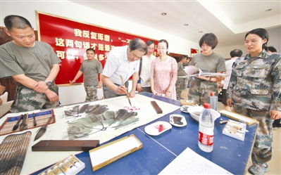 市文联组织书画志愿者挥毫泼墨迎“八一” 2018-08-01 08:35 滁州网 扫描到手持设备 字号: 7月30日,在驻滁某部队,书画志愿者在为部队官兵们书写字画。当日,市文联组织10名书画志愿者走进驻滁某部队,以书画的形式,续写我市双拥优良传统,描绘军民鱼水情谊,与部队官兵一起喜迎“八一”节。 记者卢志永摄 责任编辑:陈姝妤 复制网址 打印 收藏 关于我们 | 联系我们 | 加入我们 | 版权声明 | 手机访问 | 网站地图 | 留言反馈 | 我要投稿 中共滁州市委宣传部主办 滁州日报社承办 Copyright?2009-2010 Chuzhou.cn. All Rights Reserved 滁州日报社 版权所有 皖网宣备3412015001号 皖ICP备11004325号-1 热线电话:0550-3022685