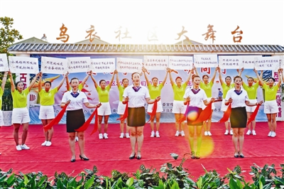 8月15日,南谯区乌衣镇乌衣社区大舞台上,演员们正在表演快板《文明同行》。