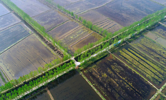航拍的全椒县二郎口镇“稻虾连作”基地 沈果 摄