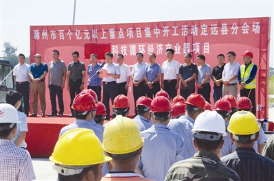 县委常委、常务副县长周成东主持开工仪式。他在致辞中指出,近年来,定远县在市委、市政府的坚强领导下,始终坚持项目支撑战略,把项目作为第一抓手、第一拉动、第一引擎。全县上下不遗余力引项目,真诚服务为项目,全力以赴建项目,项目建设热情持续增温、高潮持续不断、成果持续巩固,为全县经济社会发展注入了源源不断的动力。县直各单位要进一步增强“项目为王”意识,一如既往地做好帮办服务工作,提高工作效率,想企业之所想,急企业之所急,办企业之所盼,真心实意地为投资业主和施工企业排忧解难,为项目建设创造一流的环境,着力打造定远投资洼地、服务高地;要以11个项目集中开工建设为新的起点,进一步增强加快发展的责任感和使命感,牢牢把握“工业强县”主战略,始终保持攻坚克难的勇气和奋进开拓的锐气,外抓招商引资,内促产业升级,努力争取更多大项目、好项目落户定远、贡献定远,为全县经济社会发展作出更大的贡献。各项目业主和企业要抢抓当前施工黄金时期,科学安排,争分夺秒,大干快上,力争把每一个项目都建成一流工程、样板工程,力争项目早竣工、早投产、早见效,全面实现经济效益、社会效益、生态效益三丰收。