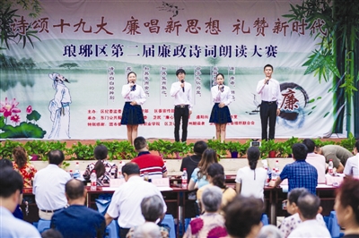 8月20日下午,琅琊区“诗颂十九大 廉唱新思想 礼赞新时代”第二届廉政诗词朗读大赛,在悠扬的古筝声中拉开序幕,当天200余名干部群众齐聚在东门公共服务中心社区的百姓大舞台,徜徉在中华诗词的长河。