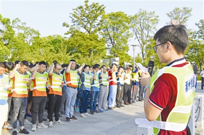 “我志愿参加创城志愿者,恪守职业道德,诚实守信,自觉遵守文明公约,积极参与文明城市创建活动……”当日,500名快递员齐聚清流河公园广场,代表滁城1200多名快递从业人员,举行创城志愿宣誓活动。志愿者代表接过创建文明城市志愿服务队旗帜,奔赴各自岗位,以实际行动,争做文明先锋,为创城加油助力。