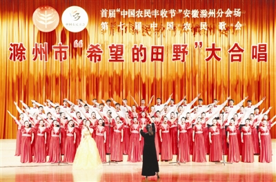 此次大合唱是第七届中国农民歌会暨首届“中国农民丰收节”滁州分会场重要系列活动之一。来自全市政法、教育、卫生、老干部、交通、供电、通信、高校、金融等系统的12支合唱队近600人参加演出。