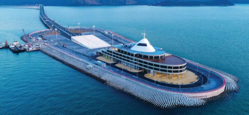 珠澳口岸人工岛是港珠澳大桥主体工程与珠海澳门两地的衔接中心,两地过关口岸都设置在岛上,实现“城市中转”。