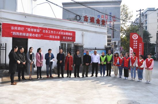 10月23日上午,安徽省民政厅“睦邻家园”社会工作介入社区治理项目“妈妈的味道爱心餐厅”—同乐翁舍开工仪式在琅琊区古道社区志愿服务广场举行。市、区民政局,区文明办,琅琊公共服务中心相关负责人,社区的居民代表和滁州学院教育科学学院的大学生志愿者们参加仪式。