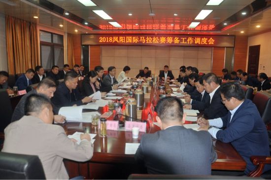 10月25日上午,我县召开2018凤阳国际马拉松赛筹备工作调度会,县领导徐广友、罗圣权、王连侠、田海松、徐琪、缪传凤、李刚,赛道沿途乡镇负责人,非赛道沿途乡镇、县经开区分管信访负责人,县直有关单位负责人,小岗村负责人等参加调度会。会议由县委副书记、县长罗圣权主持。