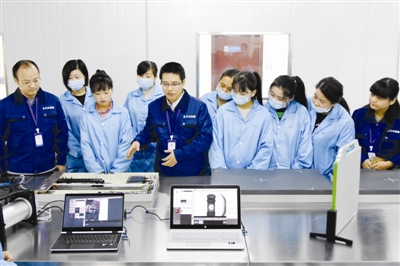 近日,在安徽竹天探索智能科技有限公司,清华大学博士后王小兵向员工介绍PB30便携成像板工作原理和组装测试要点。王小兵今年1月利用自主研发的探测技术和算法软件技术,返回家乡定远县创办该公司,公司分两期建设微震人员检查系统、便携式X射线检查系列产品和安检机系列产品。目前,企业解决当地80人就业。特约摄影冯再雷
