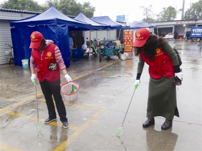 随后,市文联志愿者冒雨走进社区街道、居民小区,有的手拿小铁铲、有的手握铁钳子,向“牛皮癣”小广告和果皮、烟头等垃圾宣战。针对“牛皮癣”难以铲除的情况,志愿者们开动脑筋,想出喷水清除的方法,全力将小广告铲除,并及时清理铲除后的纸屑,取得了良好效果。