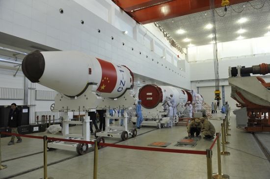 图为长征十一号运载火箭正在组装