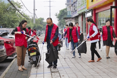 滁州日报社20余名志愿者在中都大道包保路段开展“净城行动”和“双捡”活动。