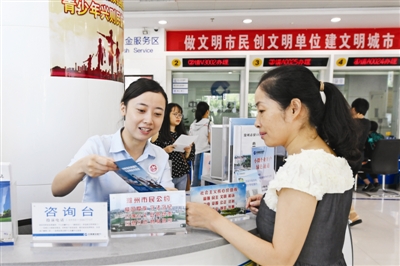 滁城南谯路与凤凰路交叉口的建设银行咨询台前,志愿者正在引导市民办理业务。