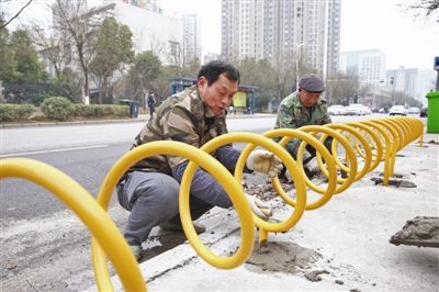 安装停车架 停放更规范 2019-01-07 08:45 滁州网 扫描到手持设备 字号: 1月3日,在滁城阳明路同乐苑小区门口,工人们在安装螺旋式停车架。近日,市政部门在城区非机动车停车区域较大的主要路段安装螺旋式停车架。停车架的安装,不仅起到防范车辆丢失的作用,更让电动车、自行车等非机动车辆的停放得到规范。 记者卢志永摄 责任编辑:陈姝妤 复制网址 打印 收藏 关于我们 | 联系我们 | 加入我们 | 版权声明 | 手机访问 | 网站地图 | 留言反馈 | 我要投稿 中共滁州市委宣传部主办 滁州日报社承办 Copyright?2009-2010 Chuzhou.cn. All Rights Reserved 滁州日报社 版权所有 皖网宣备3412015001号 皖ICP备11004325号-1 热线电话:0550-3022685