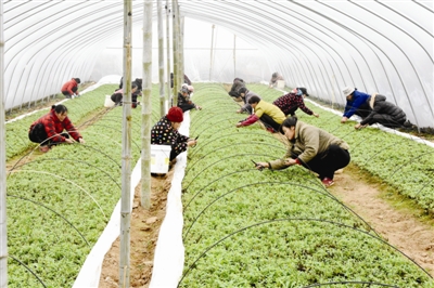 1月15日,在定远县拂晓乡的农民工返乡创业基地,村民正在采摘甜叶菊。