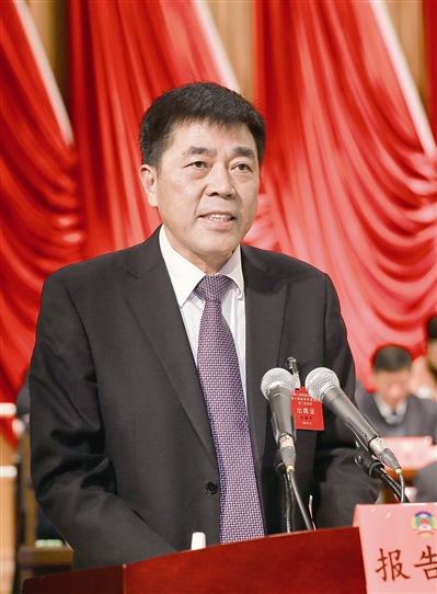 汪建中作常委会工作报告。 记者卢志永 计成军摄
