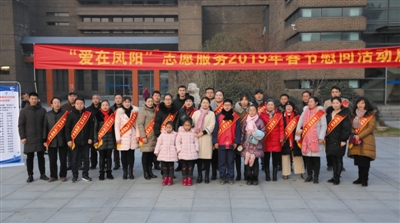 1月19日,凤阳县“爱在凤阳”志愿服务2019年春节慰问活动启动仪式在县政务中心东门广场举行,活动中,49名来自全县各地的“身边好人”、道德模范及爱心人士自发捐款9500元,分别捐助了总铺镇、小溪河镇共19名品学兼优的贫困家庭学生。图为启动仪式现场。