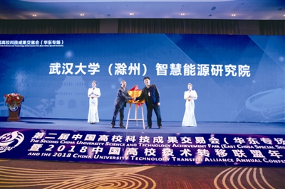 2018年11月29日,在第二届中国高校科技成果交易会(华东专场)暨2018中国高校技术转移联盟年会上,由滁州经开区与武汉大学合作共建的武汉大学智能研究院揭牌