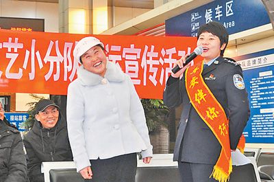 为了给回乡旅客营造更温馨舒适的出行环境,大同铁路公安处文艺轻骑兵小分队近日带着精心编排的文艺节目走入车站候车室,为旅客带去欢笑和温暖。任 军摄