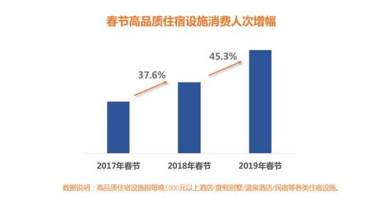 游客品质化消费诉求日渐突出,高品质住宿设施消费人次年增长率超35%,19年春节同比增幅高达45.3%。