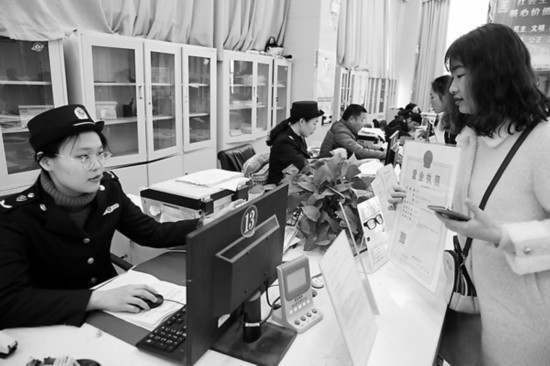 3月1日,淮北市相山区行政服务中心工作人员为群众办理和换发新版营业执照。通讯员 李鑫 摄