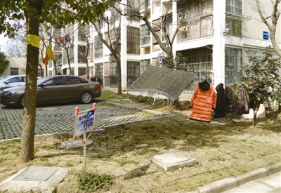 小区居民私拉绳索晾晒衣物。
