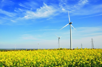 风电项目附近的油菜花海成为滁州一道风景线。通讯员 吴宗宝摄