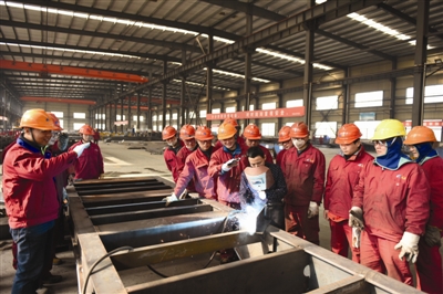 近日,滁州市二职高专业老师在南谯区天达汽车部件制造有限公司为一批新入职的员工示范讲解焊工技术。今年,我省将就业创业促进工程纳入民生工程。南谯区通过校企联合培训、企业自主培训、培训机构定向培训等形式,免费支持农民工、去产能企业和“僵尸”企业困难人员等群体就业创业。目前,该区已免费举办企业新录用人员岗前技能培训4次,培训420人。