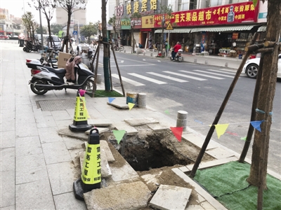 据记者现场观察发现,绝大部分坑周边均设置了几个“雪亮工程”的反光立锥或明黄色的防护栏,仅有极个别的没有任何警示标语和防护。采访中,多名市民表示对“雪亮工程”并不了解。“这个洞太大了,晚上光线不好,老人或孩子万一不小心掉下去,后果不堪设想。”一名路过南谯北路白云商厦门口的市民指着一个没有做防护措施的大坑忧心地说。