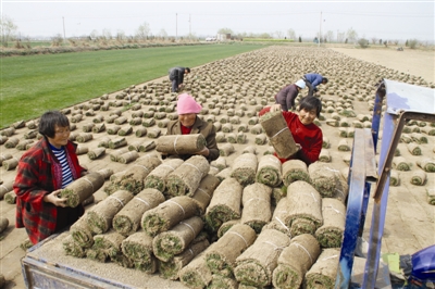 近日,明光市青青草坪专业合作社负责人陈守武带领泊岗乡高秦村贫困户王家云、高家健、丁维猛等人在草坪地里忙着铲扎草坪、装车外运。泊岗乡通过培育盛景银杏基地和青青草坪种植基地,把发展苗木、草坪产业作为“资产收益扶贫工程”改善民生,同时吸纳了30多名贫困户和农户常年务工,使他们每年增加收入6000多元。目前,该乡趁春季植草季节,将草坪销往合肥、黄山及河南、山东等地。