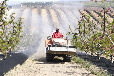 近日,定远县藕塘镇巴哥果林种植专业合作社的生产基地,果农正在喷洒生物制剂,为桃树灭菌。连日来,定远县农民抢抓晴好天气的有利时机,认真做好田间管理,田间地头呈现一派繁忙景象。 特约摄影冯再雷