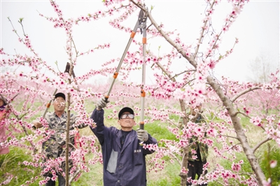 春暖花开,万物复苏。近日,来安县桃丰农业合作社的4000余亩桃花迎春绽放,合作社的果农们抓紧时间进行疏花授粉、碎枝还田,为果树挂果作准备。 特约摄影吕 华