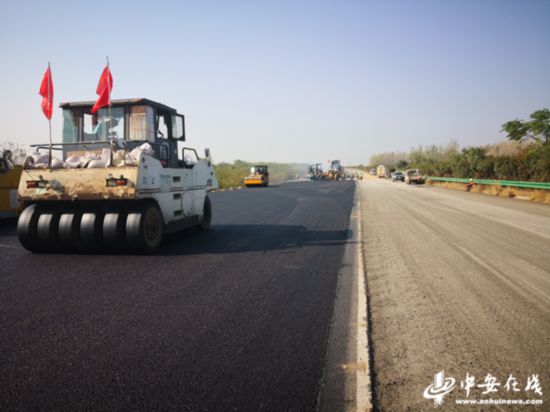 在合宁高速“四改八”改扩建项目01标段,现场车来车往,机器轰鸣,一派繁忙景象。记者看到,该标段目前主体路面已基本完工,正在进行沥青路面摊铺。只见,一台台装载机、一辆辆运输车往来穿梭于拌合站和施工现场之间,数台沥青摊铺机在暖暖春意中展开摊铺作业。正在作业。据介绍,全体施工人员正抢抓当前晴好天气等有利施工条件,加快施工,向通车的目标发起冲刺。