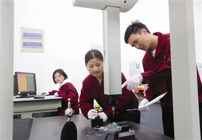 4月9日上午,市中新苏滁高新技术开发区安徽胜华波汽车电器有限公司测试中心技术人员运用三坐标测量仪检测智能电子马达性能。