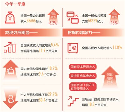 “一季度,全国财政收入运行平稳,全国一般公共预算收入同比增长6.2%,保持在合理区间。其中,国内增值税、国内消费税、企业所得税3个主要税种合计增长14.7%,反映出宏观经济运行总体保持平稳。”财政部国库司副巡视员李大伟表示。