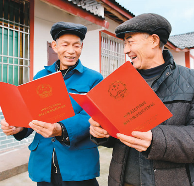 1月4日,四川省南充市蓬安县新园乡渔坊村210户村民喜领《农村土地承包经营权证》。承包地确权颁证后,农民吃上了“定心丸”。彭圣洲摄(人民视觉)