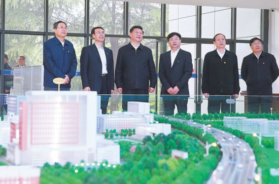 2016年4月26日下午,中共中央总书记、国家主席、中央军委主席习近平在中国科技大学沙盘前了解大学规划建设情况。 (资料照片)徐国康 摄