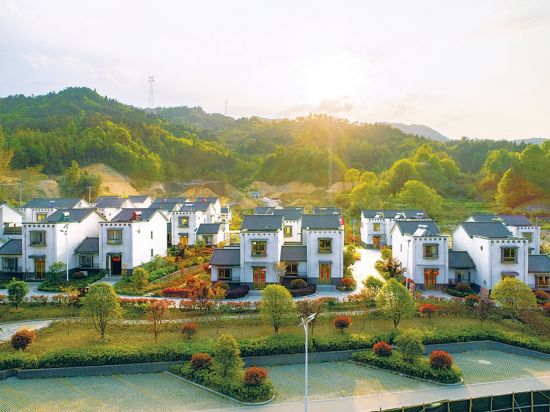 大湾村易地扶贫搬迁安置点的徽派民居错落有致地分布在山间,成为一道亮丽的风景线。