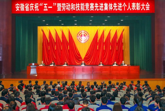 4月29日上午,安徽省庆祝“五一”暨劳动和技能竞赛先进集体先进个人表彰大会在安徽大剧院隆重举行。安徽日报记者 徐国康 摄