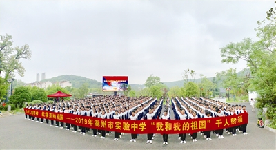 图为滁州实验中学千名学生朗诵《我和我的祖国》。