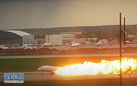 5月5日,一架客机在俄罗斯首都莫斯科谢列梅捷沃机场迫降。新华社发(谢尔盖摄)